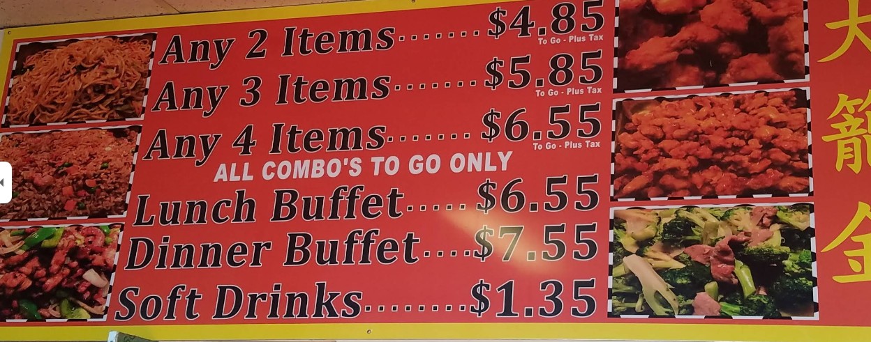 This is a good inexpensive place to have lunch. They fully load their lunch plates when taking togo and it’s only $8.95 for a three item plate which is more food than most folks can enjoy in one meal. The buffet variety is smaller than the large stores but the price is set at right. Food tasted fine and ladies packing the food were friendly.